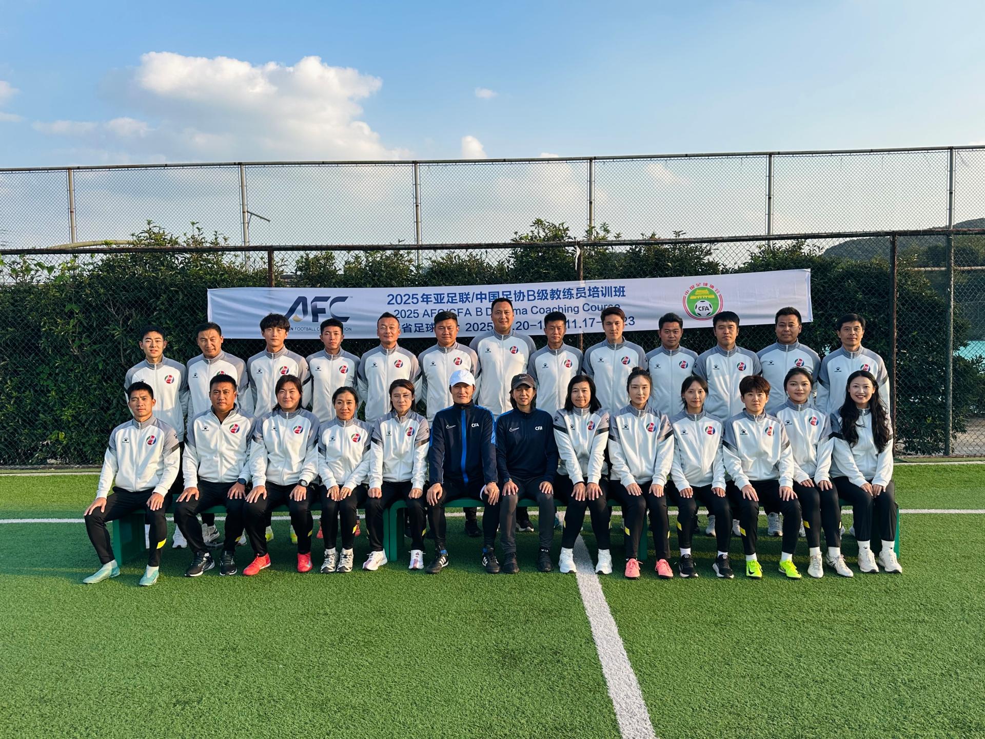 近日,2025年度亚足联/中国足协B级教练员培训班在浙江绿城足球学校顺利举行。沈阳体育学院足球运动学院教师杨东博、王殿义、潘洪涛与研究生王瑞乐凭借扎实功底和优异表现,成功入选本期培训并全部通过考核。