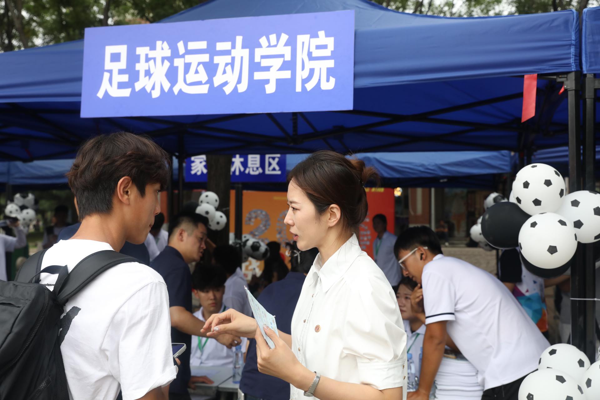 迎新当日,足球运动学院领导班子成员及专项教师一早来到报到现场,亲切慰问前来报到的新生及家长,对同学们加入足球运动学院大家庭表示热烈欢迎。领导们勉励新生要尽快完成角色转变,适应大学节奏,珍惜宝贵时光,扎实学好专业本领。