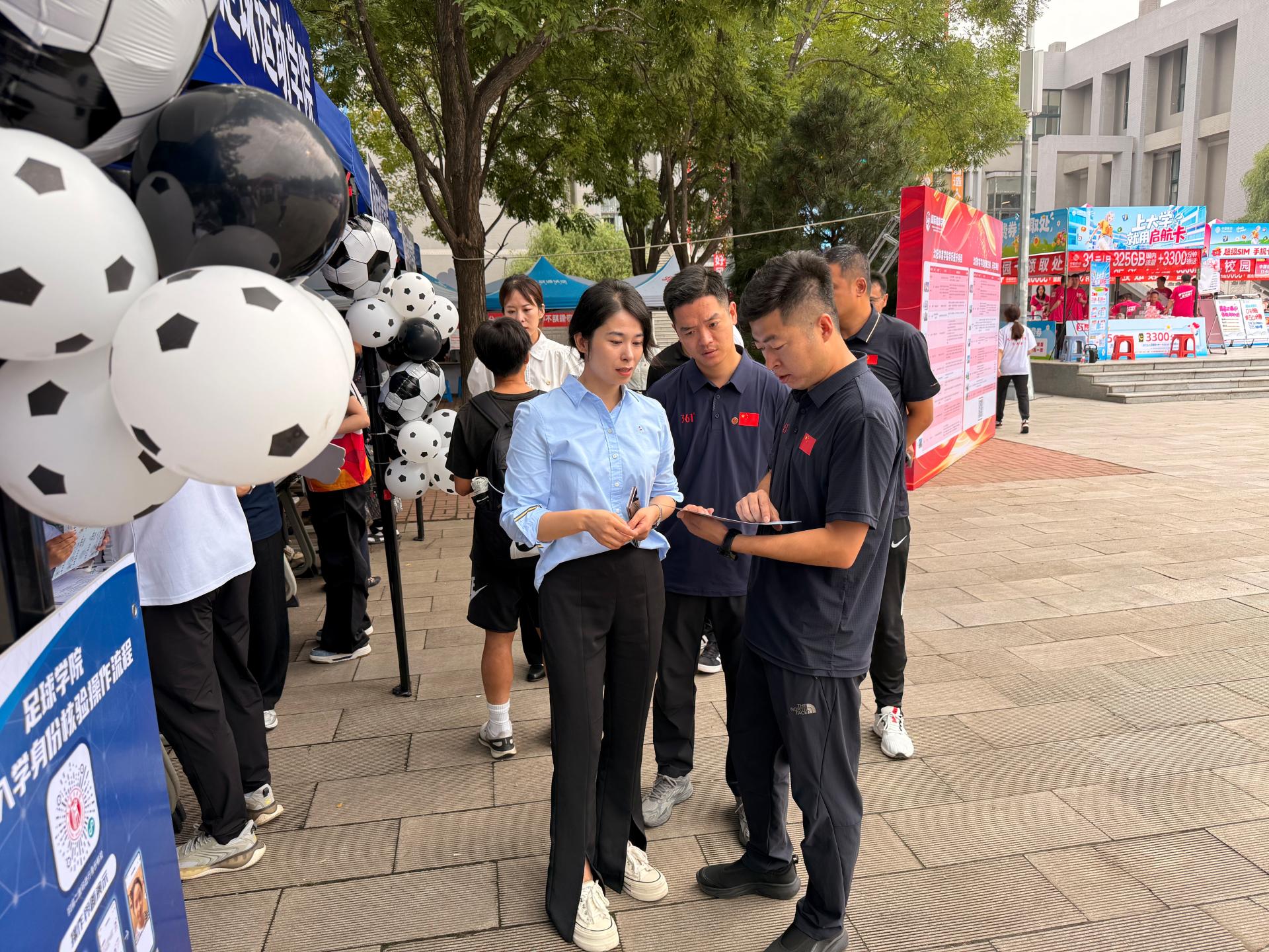 学院精心布置了足球文化主题迎新打卡点,吸引众多新生与家人驻足合影。以绿茵场和足球元素为背景的拍照区,留下了新生们初次入校的珍贵瞬间。相机的快门声此起彼伏,每一张照片都记录着灿烂的笑容和期待的目光,为他们的大学生涯拉开序幕。