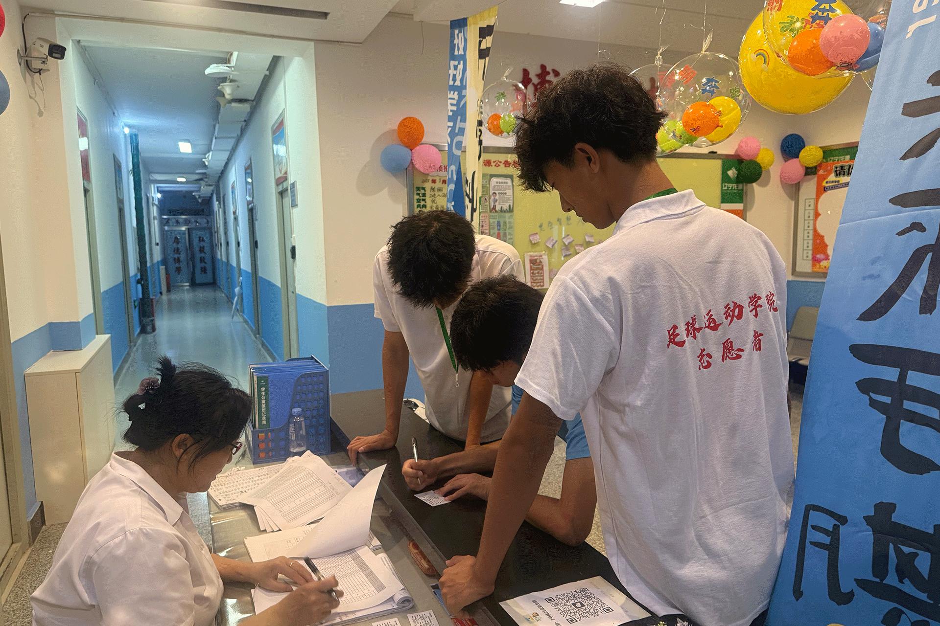 身着统一服装的志愿者们成为校园里一道亮丽的风景线。他们耐心解答疑问、细心指引路线、热心搬运行李,并认真细致地核验新生入学材料,确保报到流程高效顺畅。志愿者们用真诚的笑容让新生感受到学院的温暖与关怀,展现了足球运动学院学子团结互助、负责担当的精神风貌。